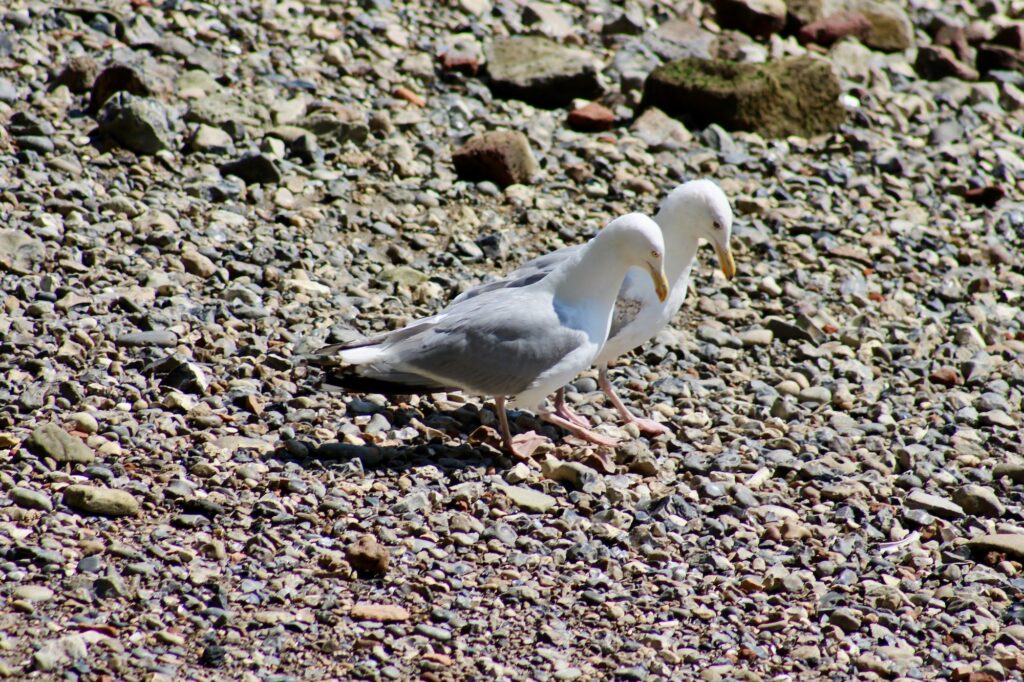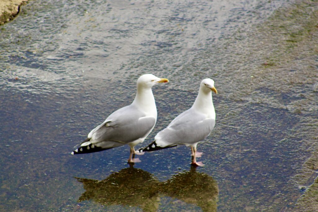 Herring gulls usually mate for life and can often be seen in pairs. Juveniles, when not annoying their parents, tend to gather in groups.