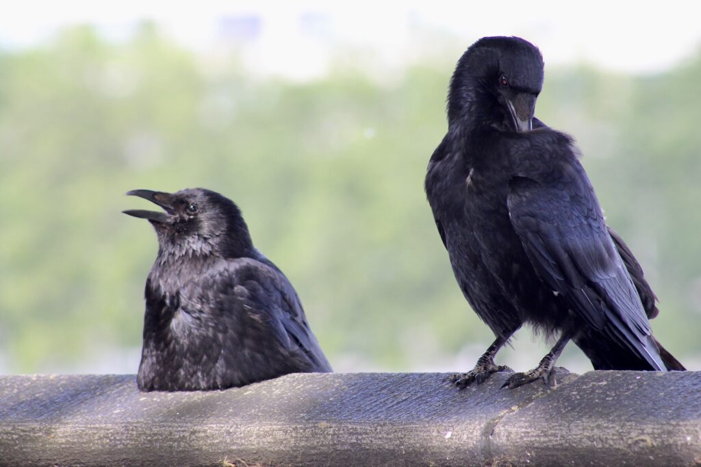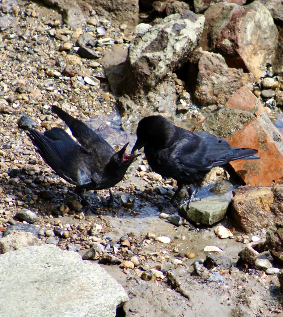 Crows are part of the Corvid family . Bright, intelligent birds they are good parents. On one occasion I saw a pair watch over their dead offspring, lying wings outstretched on the foreshore, keeping a gull and cormorant at bay.